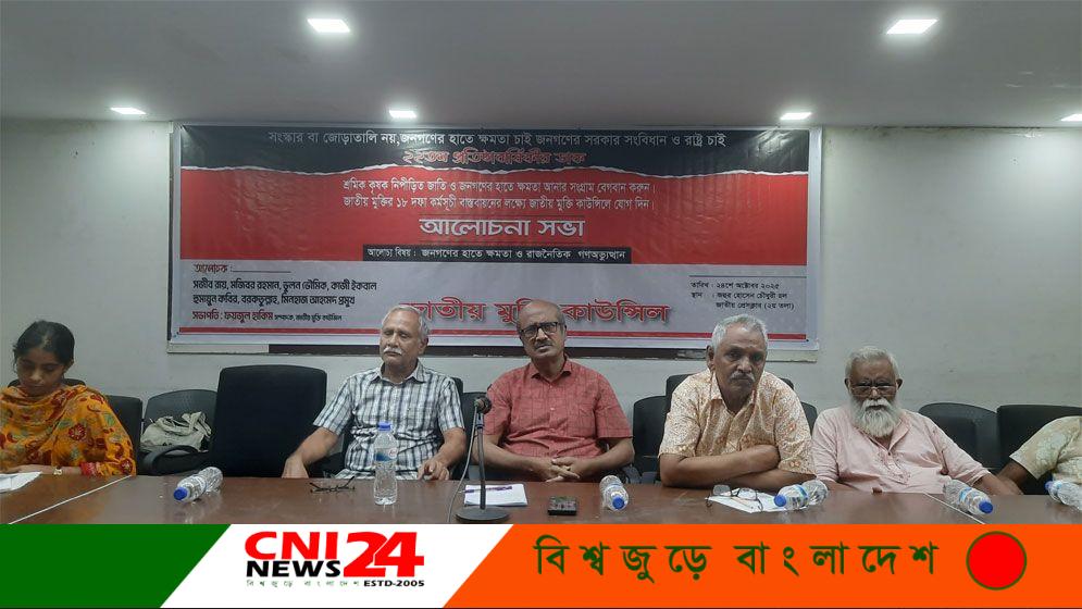 শুক্রবার রাজধানীর জাতীয় প্রেস ক্লাবে ‘জনগণের হাতে ক্ষমতা ও গণরাজনৈতিক অভ্যুত্থান’ শীর্ষক আলোচনা সভায় সভাপতির বক্তৃতায় তিনি এসব কথা বলেন।