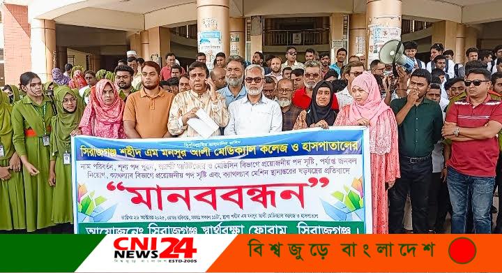মনসুর আলী মেডিকেল কলেজ থেকে ক্যাথ-ল্যাব সরানোর প্রতিবাদে সিরাজগঞ্জে মানববন্ধন