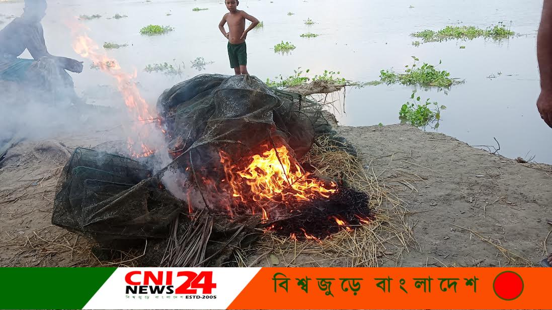 অভিযানকালে চারশ’ মিটার নিষিদ্ধ চায়না দুয়ারী জাল জব্দ ও পরে আগুনে পুড়িয়ে ধ্বংস করা হয়।