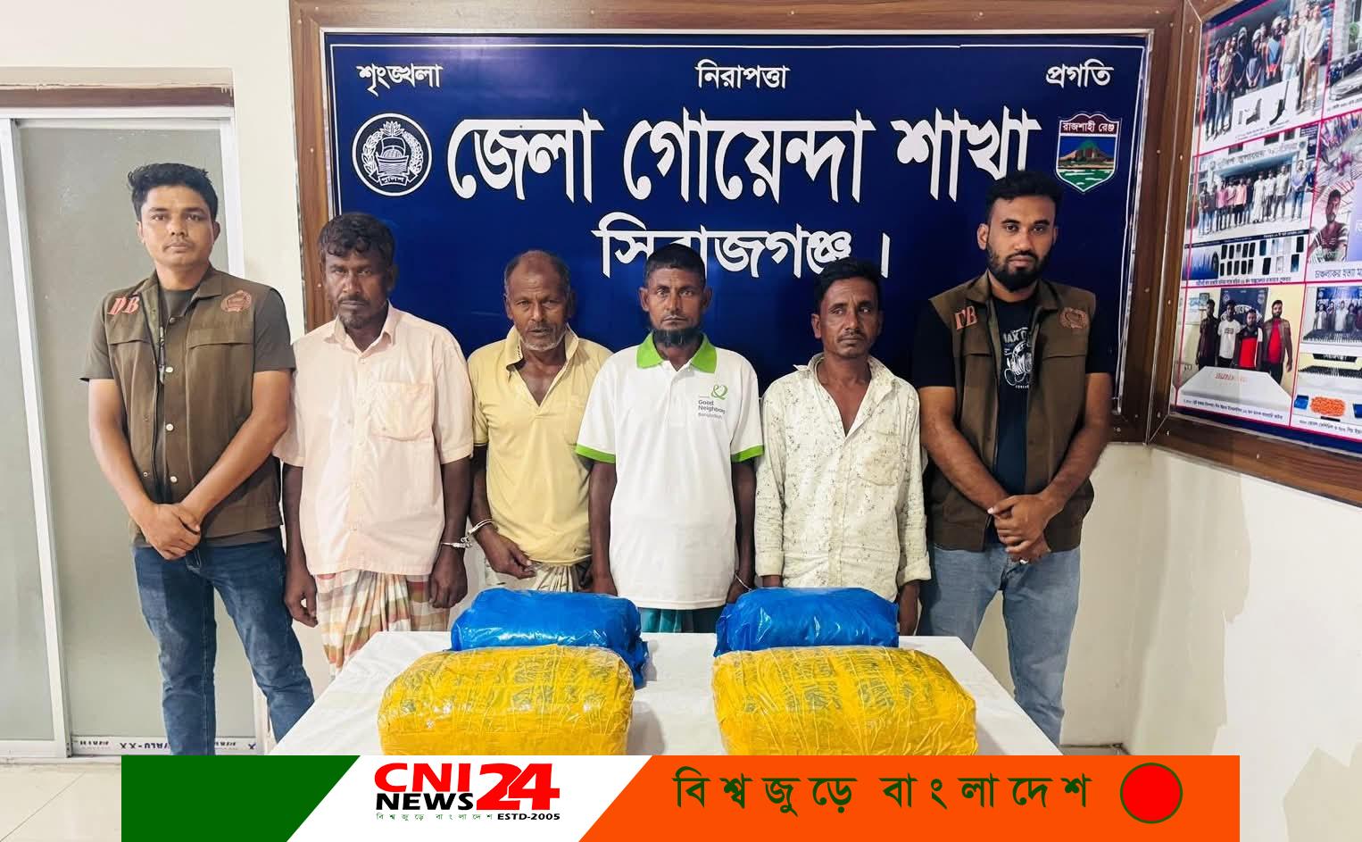 বিশেষ অভিযান পরিচালনাকালে গত ২৯ অক্টোবর গোপন সংবাদের ভিত্তিতে এনায়েতপুর থানাধীন সৌদিয়া চাঁদপুর ইউনিয়নের অন্তর্গত এনায়েতপুর বেড়ীবাধ ঘাট সংলগ্ন সার কারখানার সামনে পাকা রাস্তার পার্শ্বে কতিপয় মাদক কারবারি নেশা জাতীয় মাদকদ্রব্য গাঁজা ক্রয়-বিক্রয়ের জন্য অবস্থান করছে। উক্ত সংবাদের ভিত্তিতে একই তারিখ ২৩.০০ ঘটিকার সময় ঘটনাস্থলে উপস্থিত হলে মাদক কারবারিয়া ডিবি পুলিশের উপস্থিতি টের পেয়ে পালানোর চেষ্টাকালে মাদক কারবারি মোঃ শাহজাহান আলী (৪৫), পিতা-মোঃ রইচ উদ্দিন, সাং-চর কাপনা, থানা-নাগেশ্বরী, জেলা-কুড়িগ্রাম, মোঃ শহর আলী(৩২), পিতা-মোঃ জালাল উদ্দিন, সাং-অষ্টোআশিরচর, মোঃ আঃ মালেক (৫৬), পিতা-মৃত হাচেন মিস্ত্রি, সাং-ভগবতীপুর, উভয় থানা ও জেলা-কুড়িগ্রাম ও মোঃ মোজাম্মেল সরকার(৬০), পিতা-মৃত খবির উদ্দিন সরকার, সাং-তেবাড়িয়া চর, থানা-এনাতেপুর, জেলা-সিরাজগঞ্জগণদের আটকপূর্বক তল্লাশীকালে সর্বমোট ২০ (বিশ) কেজি মাদকদ্রব্য গাঁজা উদ্ধার করতে সক্ষম হয়।